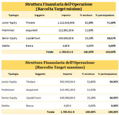 - con ticket minimo da 50.000 euro, il ROI atteso annuo lordo è pari al 14%. Tali quote daranno diritto di partecipare ad una procedura per l’acquisto degli immobili (Quote A1)